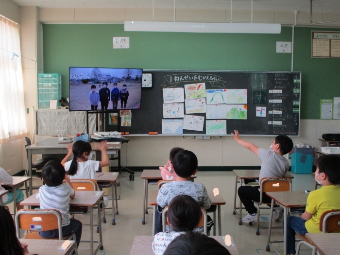 そこで、上級生から1年生へ小学校入学のお祝いと歓迎のビデオレターを送ることになり、今日は会の代わりに、1年生が動画を鑑賞しました。