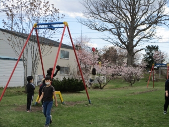 ★上西春別小学校★遊具遊びと理科の観察記録 2022年05月10日(火) 日々のできごと 遊具の点検が終わり、昨日から使えるようになりました。 中休みや昼休みには、さっそく遊具の周りにたくさんの児童が集まって元気に遊んでいました。 グラウンドはもう少し待ってね! 前庭で元気に走っています。 桜も満開になりました! 児童玄関と渡り廊下の掲示板に、4年生と5年生の理科の観察記録が掲示されています。 理科の先生と一緒にタブレットで写した写真や計測した気温を記録しています。 道東もだんだんあたたかくなっているようすがよくわかります。 5年生の記録は写真で。 4年生の記録は写真とグラフで。目に見えて暖かくなっていますね。 理科室の前にはメダカの卵を観察できるコーナーも!