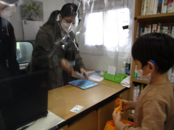 事前に図書館の司書さんが、図書バスでの本の借り方について紙芝居で説明してくださいました。