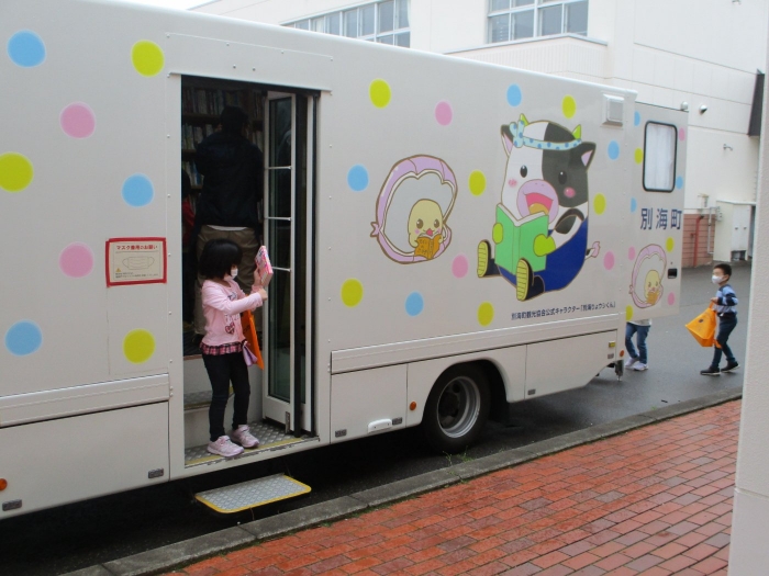 別海町図書館からは、移動図書館「はくちょう号」(図書バス)が定期的に学校に来ていただいています。