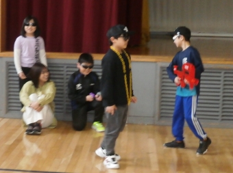 4年生は、劇とクイズとプレゼント。プレゼントは子どものアイディアで、心をこめて作っていました。