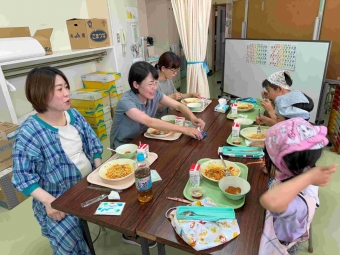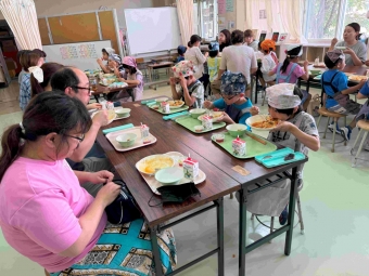 ★上西春別小学校★~1年生学級レク~ 2025年07月08日(火) 7月7日に1年生の学級レクが行われました。保護者と一緒に給食を食べました。メニューは、チキントマトソーススパゲティ、ほしのコロッケ、たなばたデザートでした。七夕メニュー\(^o^)/ お家の方と食べたので、いつもよりおいしく感じたのではないでしょうか。たくさんの笑顔が見られました! 最後に1人1人にお菓子のプレゼント。にこにこの子ども達。準備・片付けと保護者の皆様、本当にありがとうございました。