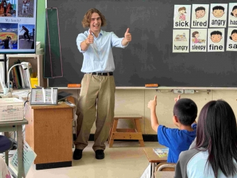 9月から外国語で新しいALTが来てくれました。ALTになったばかりなので、ベテランALTと一緒に来て学習を教えてくれました。でも、日本語はよく話せるし、子ども達とも積極的に関わってくれるので、子ども達はすぐに慣れていました。休み時間に体育館に誘って遊ぶほどです!来週にはもう1人新しいALTが来てくれます。楽しみです。