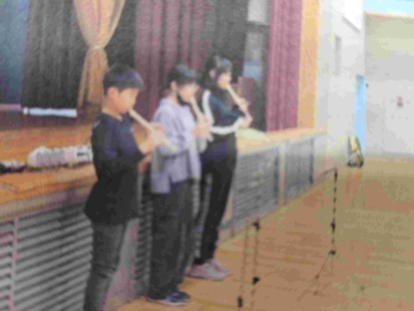 この日のために一生懸命練習をしてきました。「緊張する~」と子ども達。上西春別小学校はトップバッターでした。発表は、器楽演奏で「木星」と「名探偵コナンのテーマ」です。