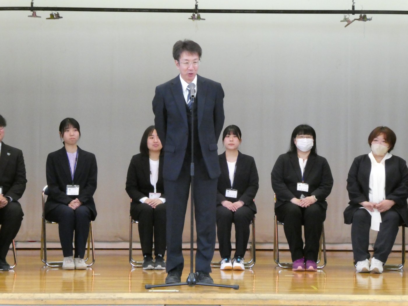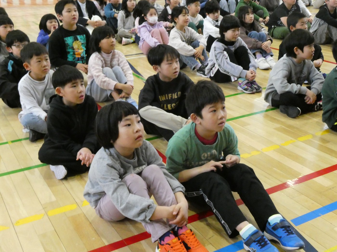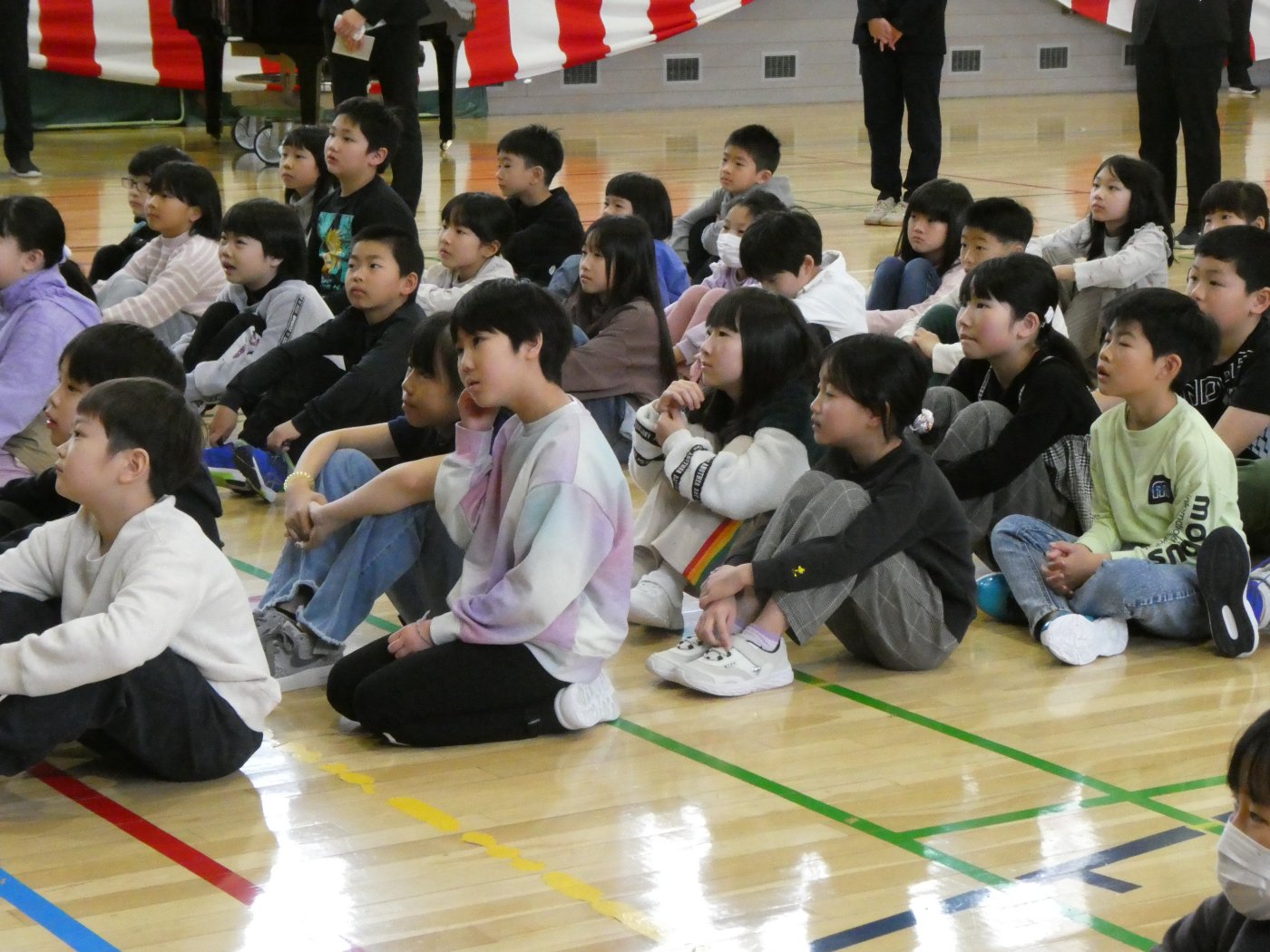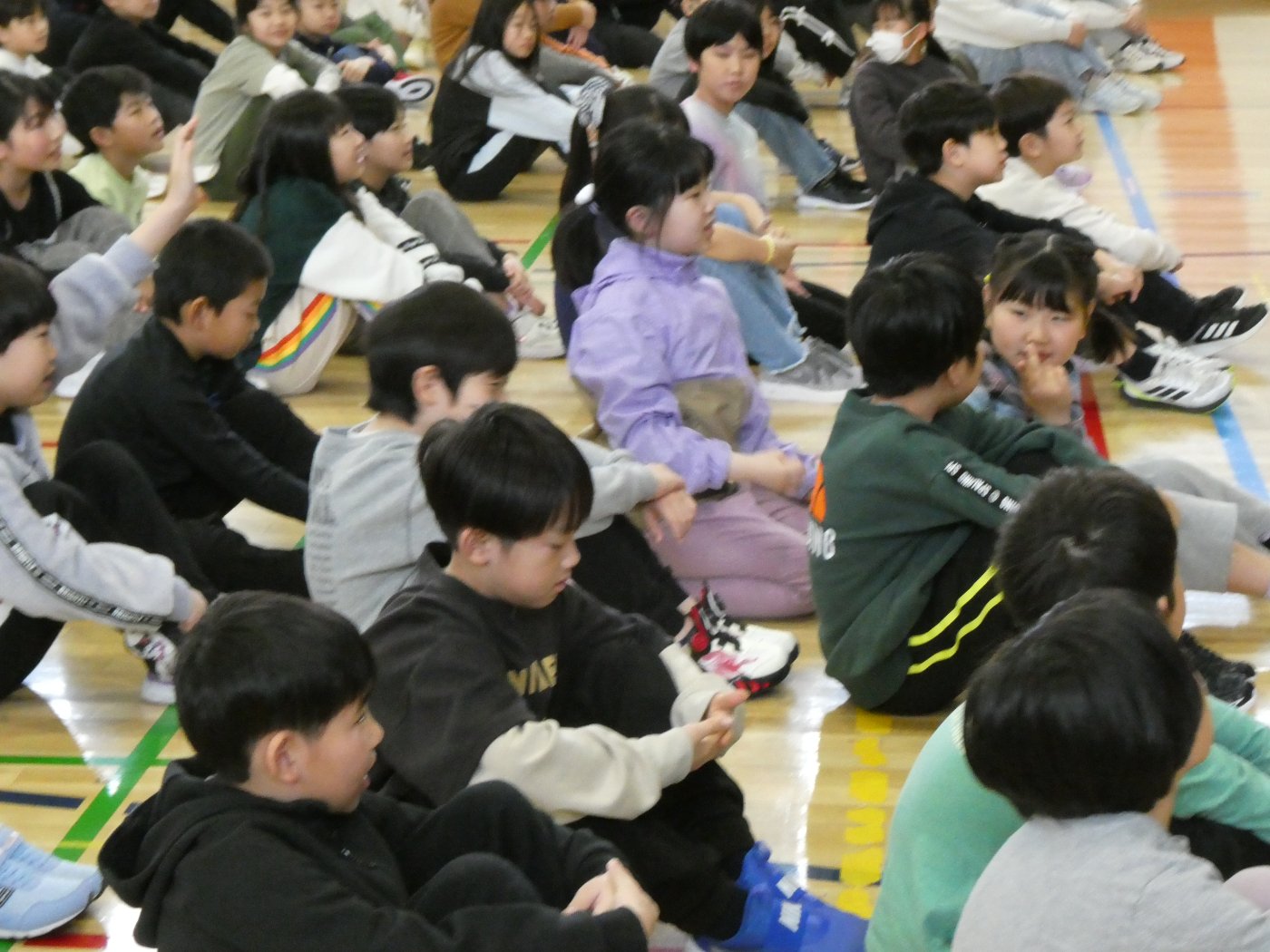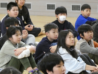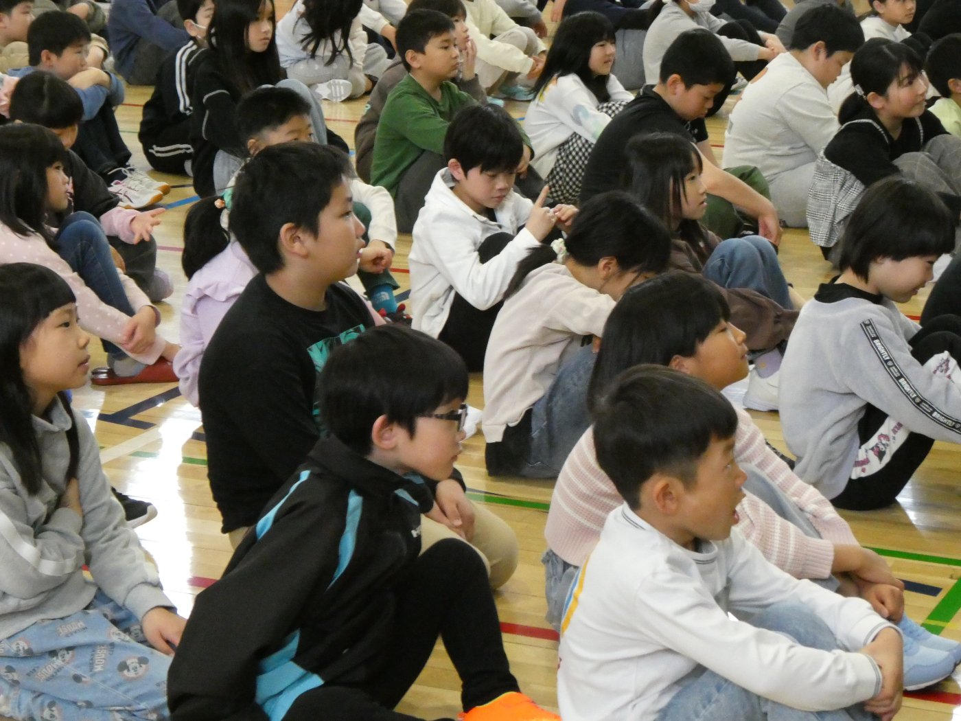 ★上西春別小学校★~着任式・始業式(全校)~ 2026年04月06日(月) NEW 12名の教職員が着任し子ども達に挨拶をしました。 始業式では、校長先生が教育目標である「学びの山を登り切ろう」についての話と、「かしこく」「やさしく」「たくましく」のうち、特に「やさしく」を意識して過ごしてみてほしいという話をされていました。その基本になるのが、挨拶だということも話されていました。