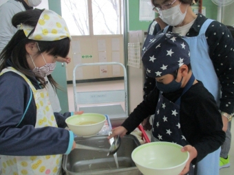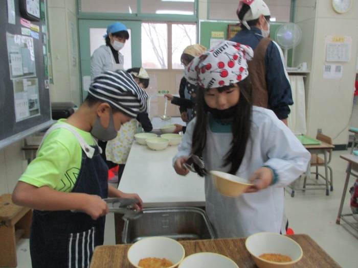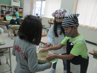 ★上西春別小学校★給食当番スタート! 2021年10月14日(木) 今週から、1年生が給食当番のお仕事をスタートしました。 これまで先生方にしてもらっていた配膳の仕事を、輪番で行います。 例年ですと給食当番は1学期のうちに始めるのですが、コロナ対策でこの時期からのスタートとなりました。 さすがに1年生も後期に入っていますので、お仕事も手際よく上手にできていて、予想よりずっとスムーズに進んでいるようです。 これからも、自分たちでできること、友だちのためにできることをどんどん増やしていきます!