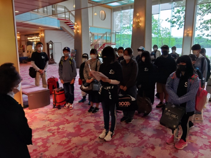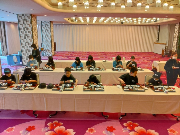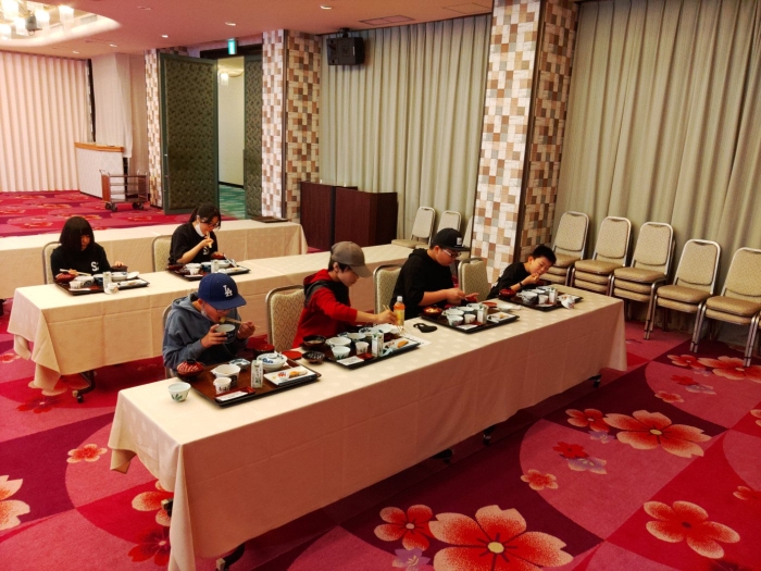 昨日の夕飯と同じ会場で、朝食をいただきました。鮭、海苔、納豆、卵、牛乳、、、これぞ日本の朝ごはんというメニューでした。