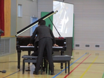 お二人のプロのピアニストが来校され、クラシックの名曲を演奏してくださいました。
