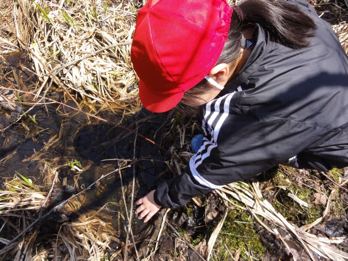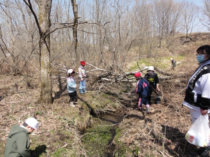 【上春別小学校】豊かな自然の中で学ぶ~オンネナイ川散策~ 2022年04月22日(金) 授業の様子 #1.2年生 #3.4年生 #オンネナイ川 #生活科 #理科 昨日、本校の1~4年生が、校外学習に出かけました。 本校の近くを流れるオンネナイ川にて、1.2年生は生活科の学習、3.4年生は理科の学習の一環として、散策を行いました。 今は、カエルの卵が採れる時期・・・、みんな夢中でカエルの卵を探します。大自然の中で学ぶ体験学習は、格別のようです。贅沢な時間を満喫した子どもたちです。 いよいよ☆出発 着きました☆さあ、カエルの卵はどこかな? 触って確かめています・・・ 夢中になるあまり、帽子にも卵が・・・
