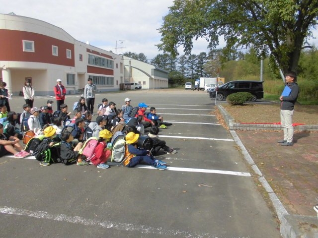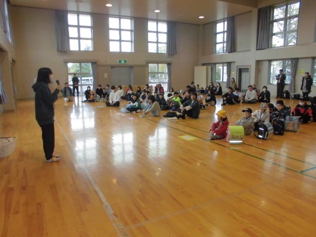 中学生は、災害時備蓄倉庫内の説明を受け、