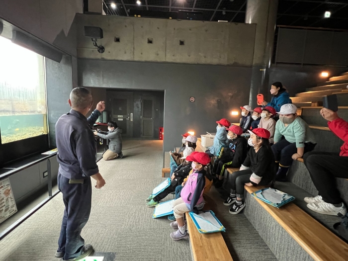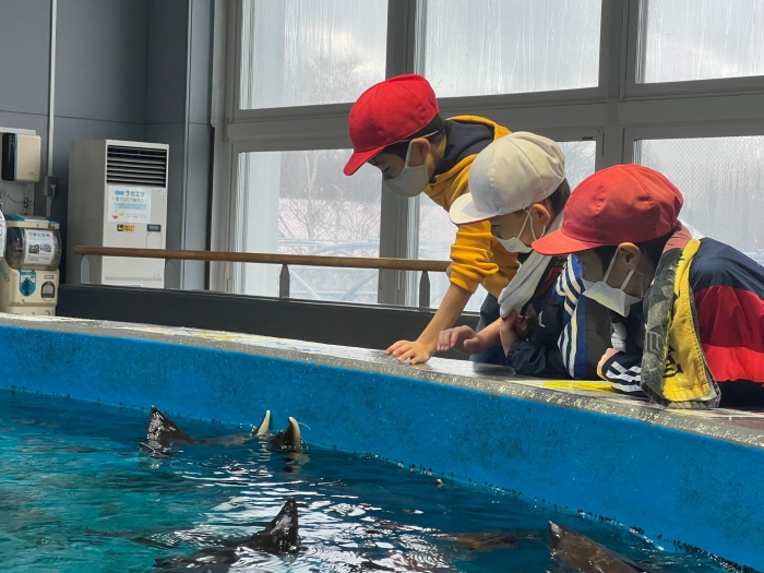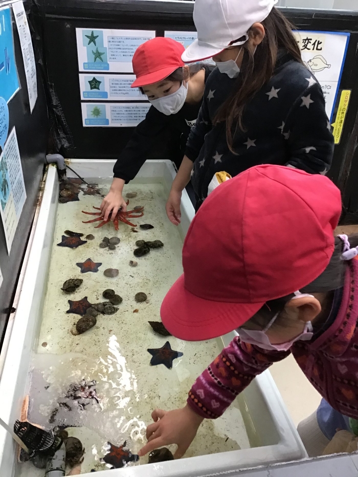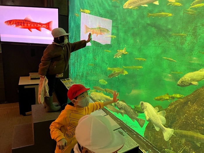 昨日、本校1・2年生が、標津サーモン科学館へ出かけ、鮭の産卵行動を観察したり、魚に餌やり体験をしたり、魚に触れたりする体験学習を行いました。