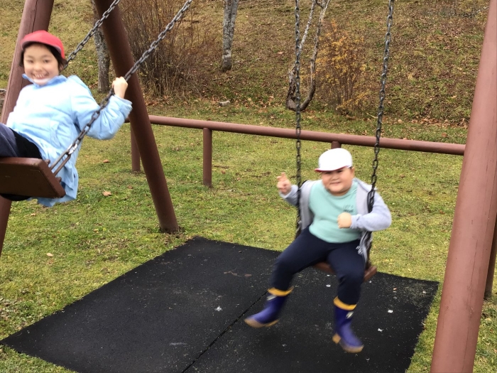 あいにくのお天気でしたが、奇跡的に雨があがったところをねらって、外遊びも満喫☆公園で思いっきり体を動かして寒空の中でも、「あついよ~!」と、薄着で体を動かし楽しみました。