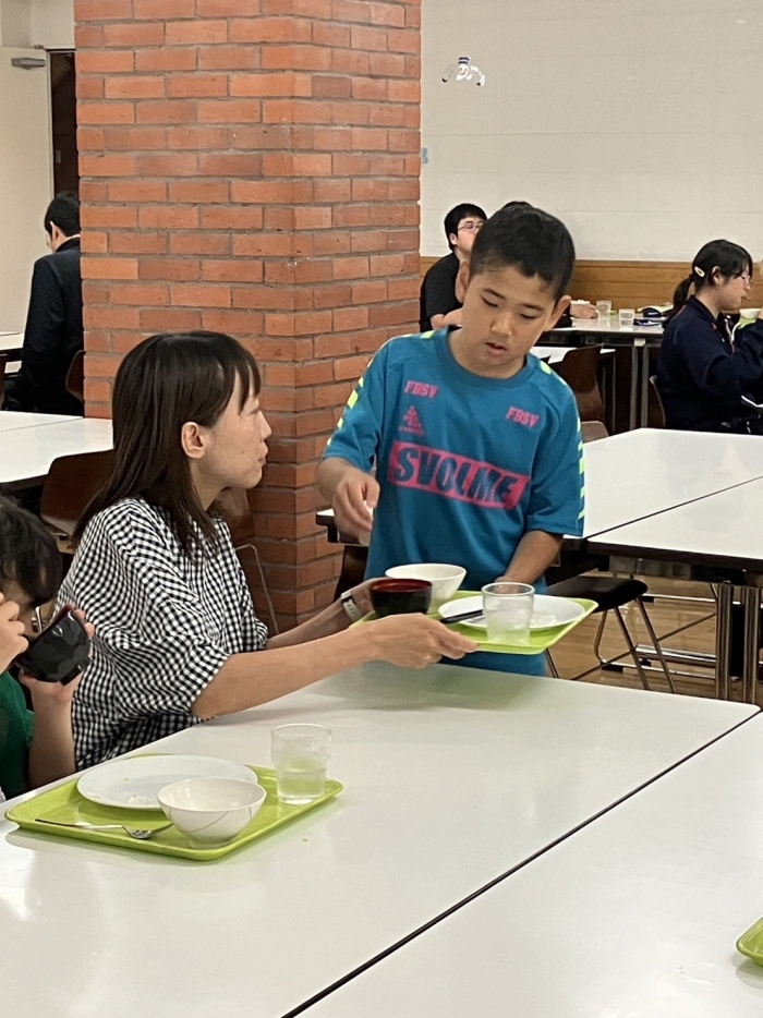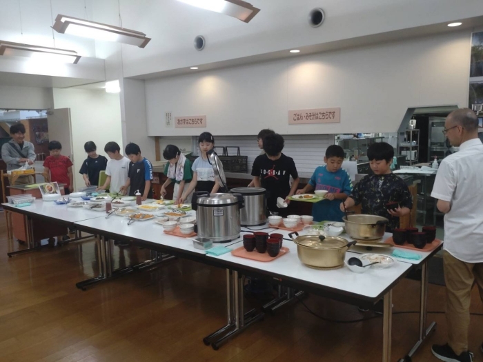 【上春別小学校】宿泊学習記⑨2日目も元気! 2024年07月05日(金) 行事 7月5日(金) 7:30 朝ごはんの準備です。 元気です。食欲もあります。 地震に気付かないくらい 昨日の夜はみんなぐっすり眠れたようです。 上春別小学校のおかず陳列コーナーは ご覧の通りです! 先生の食事後の食器を片付ける子がいたり、 みんなの水を進んで準備する子がいたり 朝から立派な上春別小学校の5・6年生です。 2日目も協力して 楽しく学ぶことを願っています。 ※写真の転用を禁止します
