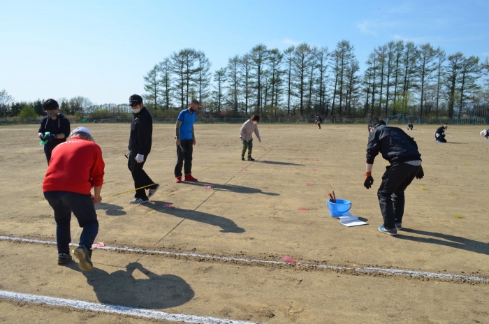 先週10日(火)、本校にグラウンド転圧が入り、合同運動会を想定してその日のうちに小中合同グランド設計が行われたところでしたが、実施について協議の結果、小中単独開催に変更となりました。
