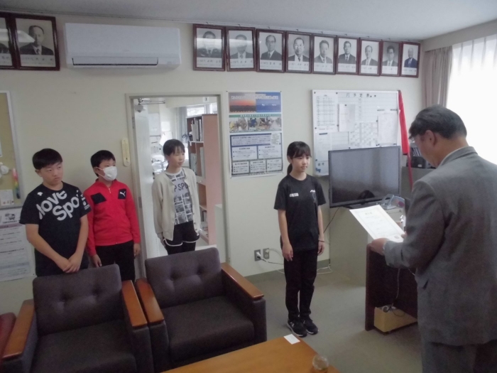 【上春別小学校】贈呈式🎁 2024年10月15日(火) お知らせ 10月15日(火) 学校はいろいろな方々から いろいろな物をいただきます。 大谷選手からグローブをいただいたことは 皆さんの記憶にも新しいと思います。 今回、公益財団法人 日本教育公務員弘済会北海道支部様より 「簡易テニスセット」をいただきました。 その贈呈式を校長室で行いました。 児童代表として、 児童会のみなさんが授与しました。 みんなで楽しく使えたらいいなと思います。 ※写真の転用を禁止します
