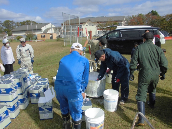 参加した皆さんが全身ペンキで真っ白になりながらも