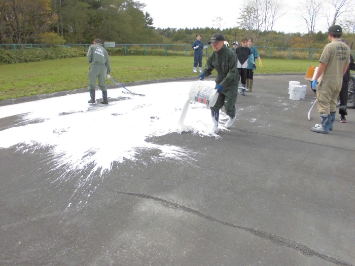 【上春別小学校】スケートリンク清掃、ペンキ塗り