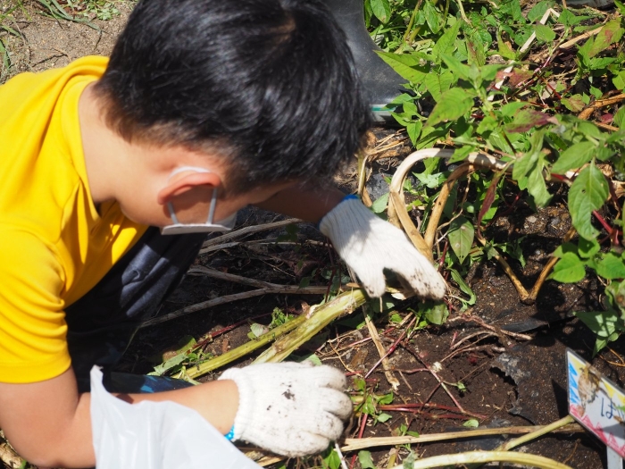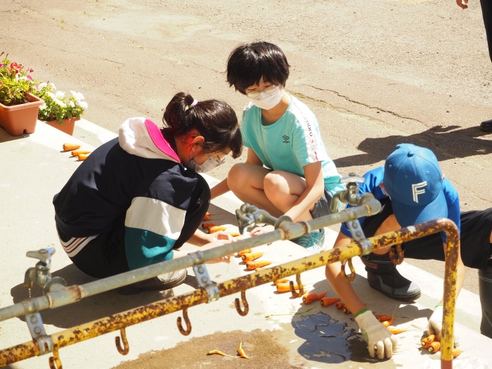 一昨日に続き、上風連小学校の畑は収穫日和でした。