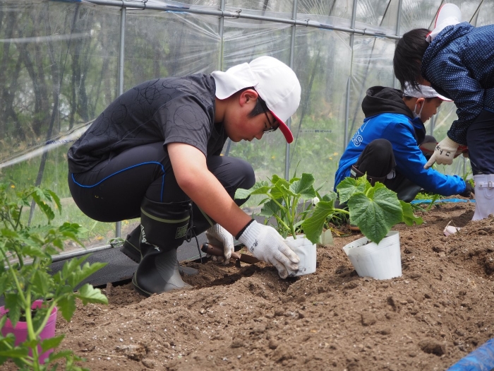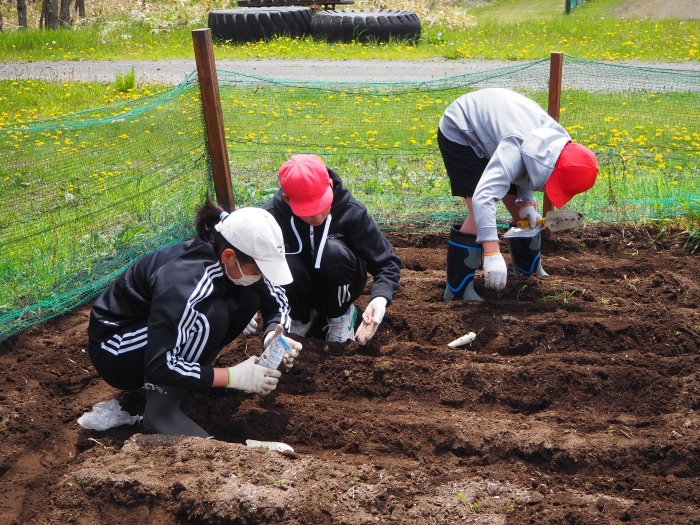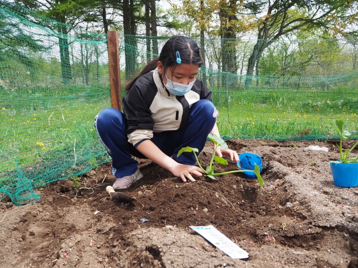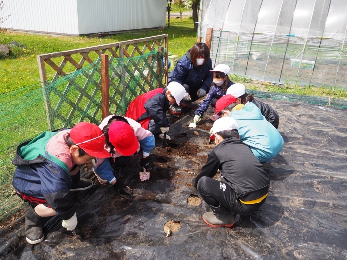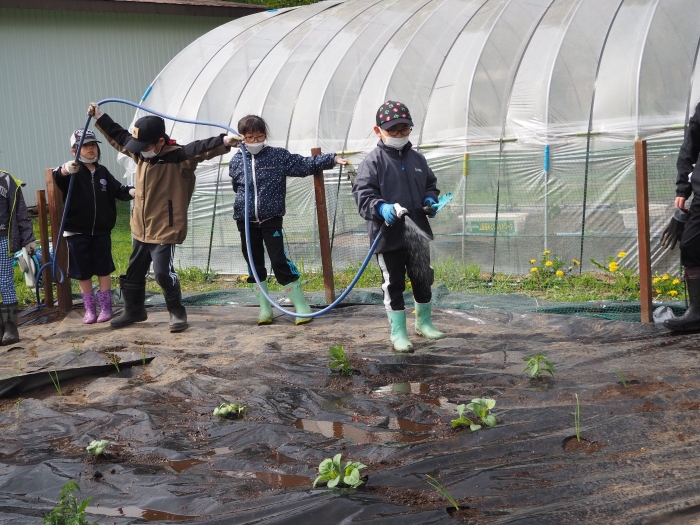 上風連小学校 授業風景 栽培活動 2023年05月29日(月) 授業の様子 #1.2年生 #3.4年生 #5.6年生 #畑 #生活科 #野菜 ビニールハウスと畑に野菜の苗や種を植えました。 環境整備作業で保護者のみなさんに畑やビニールハウスを準備していただき、これから、栽培活動をどの学年も頑張ります。おいしい野菜がたくさんできて、収穫を楽しみたいです。 中学年も頑張っています。 高学年。いろいろな野菜に挑戦します。