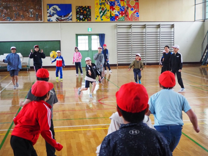 上風連小学校 休み時間 2024年07月04日(木) 委員会活動 #1.2年生 #3.4年生 #5.6年生 生活委員会の遊びの集会でドッチボールを行いました。 赤白に分かれて思いっきりボールを投げていました。