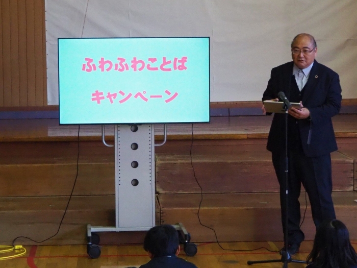 校長先生から「ふわふわことばキャンペーン」についてお話していただきました。