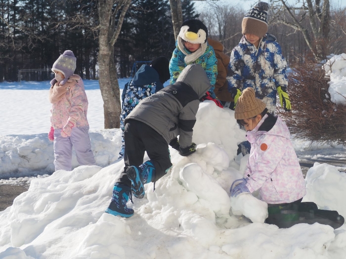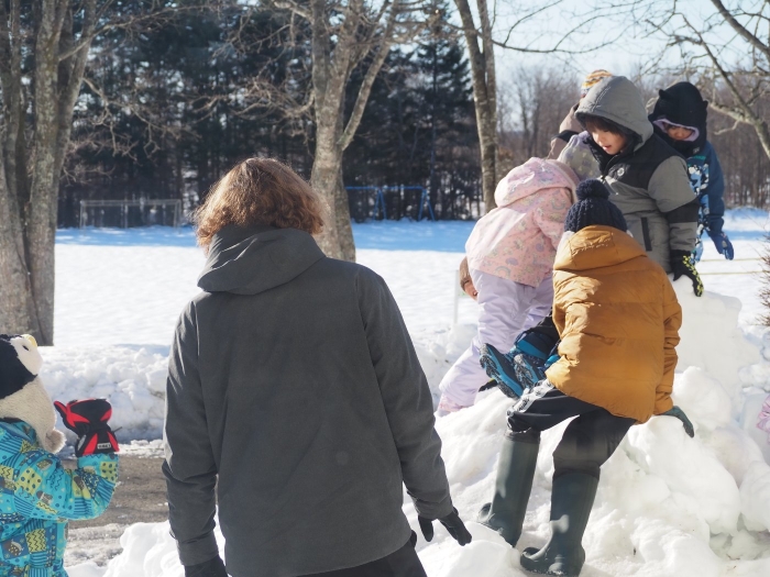 すっかりと雪景色になっている中、子ども達は元気に外で遊んでいます。