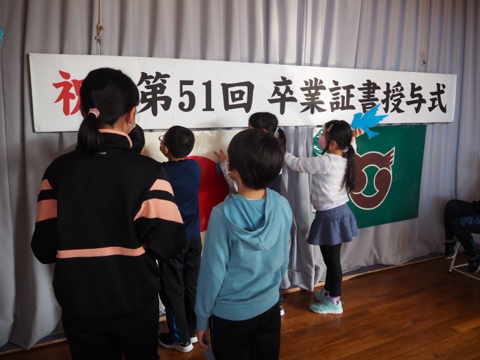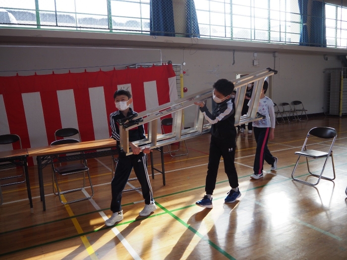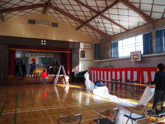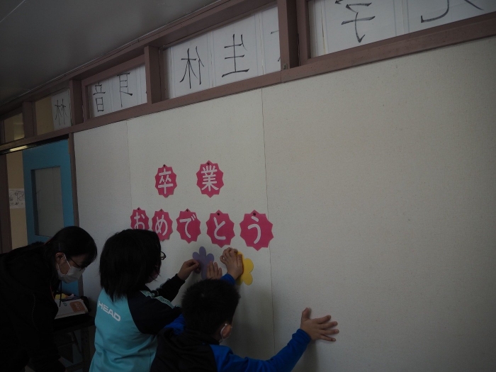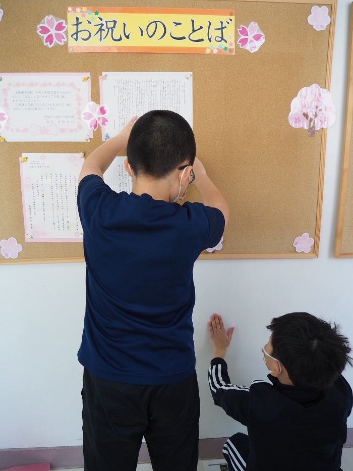 【上風連小学校】卒業式会場設営~みんなで…~ 2022年03月09日(水) 日々のできごと #3年生 #4年生 #5年生 いよいよ6年生の卒業まで、あと1週間ほど。 昨日、在校生の3・4・5年生で心を込めて会場設営を行いました。 みんなの、「おめでとう」や「ありがとう」…「がんばってね」の気持ちが伝わりますように…☆