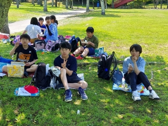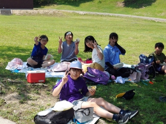やっと目的地に到着しました。 それぞれ 涼しいところを選んで 昼食です。