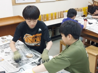 2時からキャンドル作り。真剣な眼差しで作成しています。