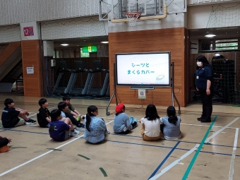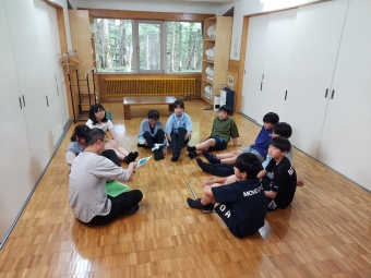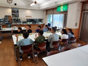 先ほどまで午前中の振り返りをして、持参したゲームで遊んでいました。いまは、晩ごはんを食べています。