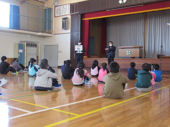 上風連小学校 学校行事 防犯教室 2023年03月01日(水) 行事 #1.2年生 #3.4年生 #5.6年生 中標津警察署の方の協力を得て、防犯教室を行いました。 学校へ不審者が入った時の対応や不審者に声をかけられた時の対応を学びました。