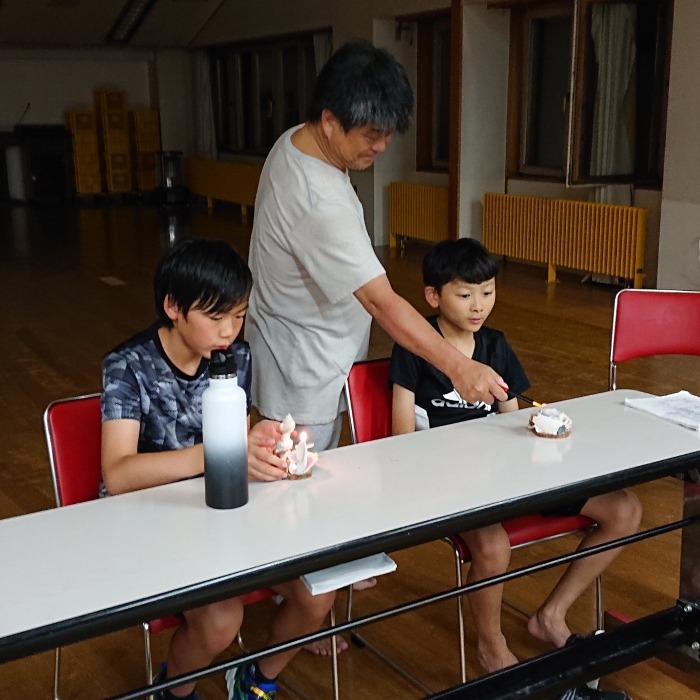 手作りのキャンドルに火を灯してみました。キャンドルの灯りのなかで、歌を歌ったり、ゲームをしたりしました。
