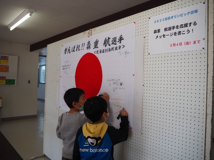 森重航選手応援旗が児童玄関に設置されました 2022年02月01日(火) お知らせ 北京オリンピックスピードスケート500m、1000m代表の森重航選手の応援旗が児童玄関に設置されました。 いよいよ冬季オリンピック開幕間近☆ みなさんの応援メッセージお待ちしております。