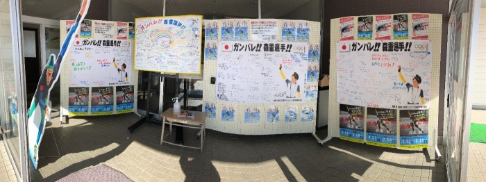 地域センターでは、本校の先輩、森重航選手に上風連小学校のみんなで書いた応援メッセージをはじめ、中学校や地域の方々のあたたかいメッセージも一緒に掲示されています。
