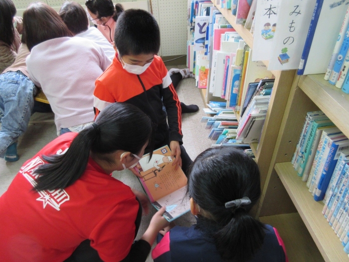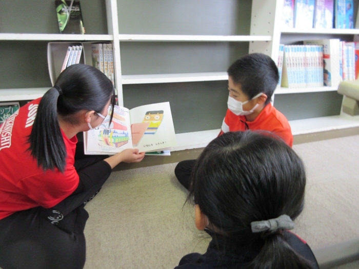 中西っ子の2学期の目標は「本をたくさん読もう」です。5年生と6年生は、全校みんながたくさん本を読んで読書を楽しめるように、様々な作戦を立ててリードしています。今日は、1年生と2年生に絵本の読み聞かせをしてくれました。絵本をいっしょに選んで読んでもらう1・2年生の楽しそうな表情・・・。本を読む楽しさに心が通じ合う幸福感もプラスされたほっこりタイムになりました。5・6年生の皆さん、ステキな企画をありがとう。
