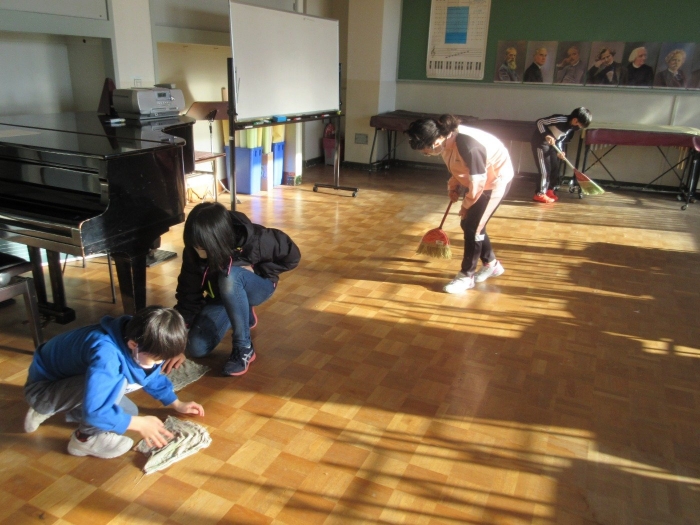 朝活動で特別教室掃除をして、昼休みは縦割り遊びをしました。