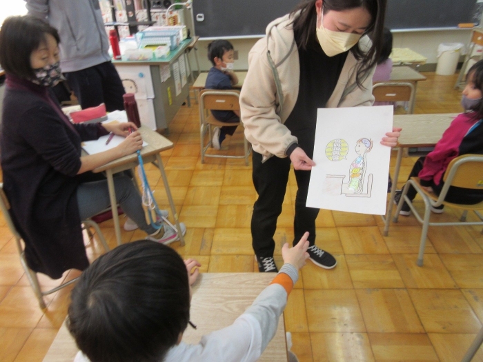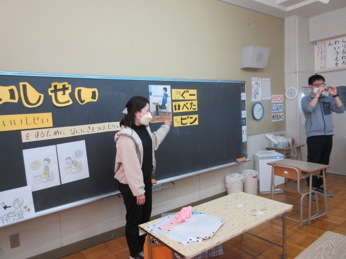 1・2年生は養護教諭の先生と「いいしせい」の学習をしました。