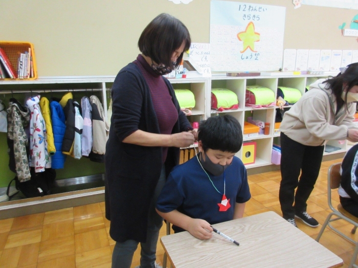最後に養護教諭の先生からサンタさんのメダルがプレゼントされました!歓声が上がります!