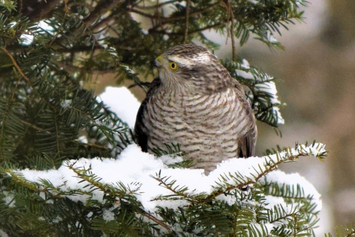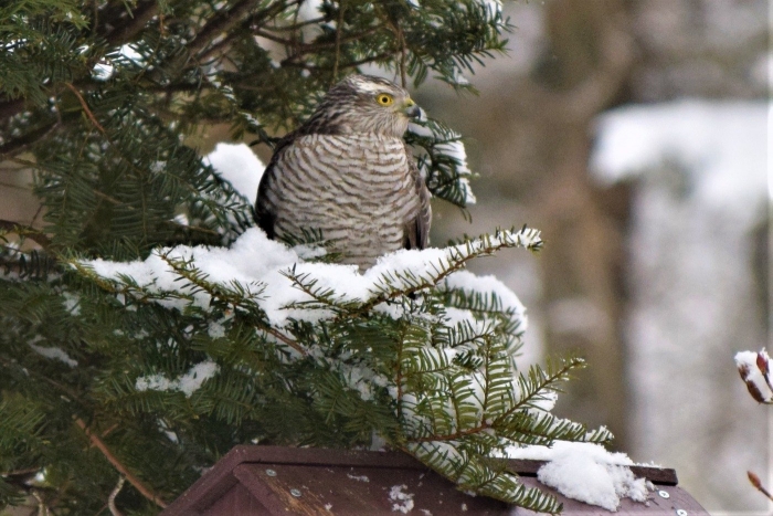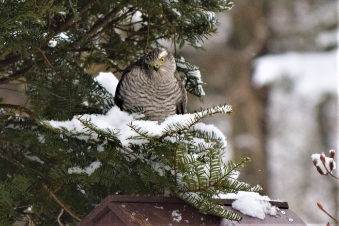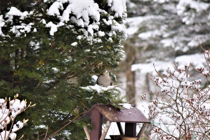 ノスリかな?は、カラスに追い払われて退散しました。