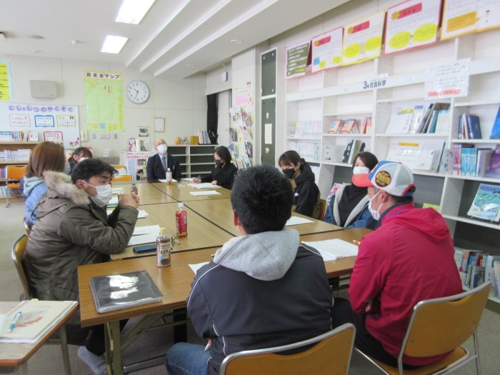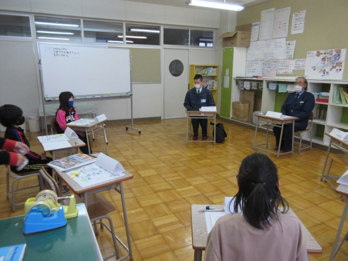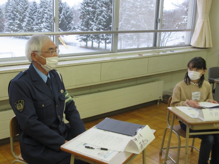 3年生は社会科「地域の安全を守る」の学習の最後に、中西っ子の登下校の見守り活動をしてくださっている地域の交通指導員の方と別海町役場の防災交通課の方をお招きして「交通安全会議」を開き、中西別の交通安全について考えていること、気を付けたいことなどを話し合いました。