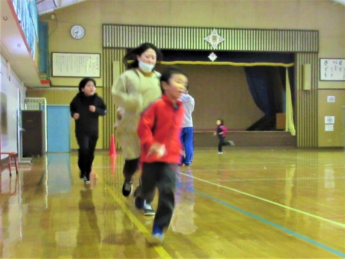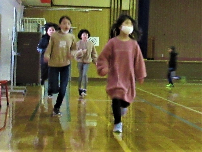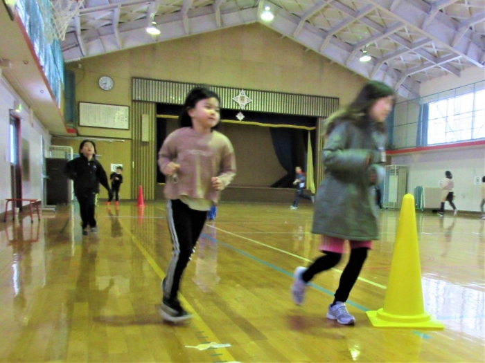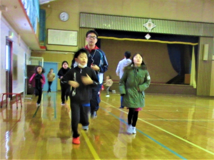 1,2,3,4年生は合同ランランランニングで元気アップ!