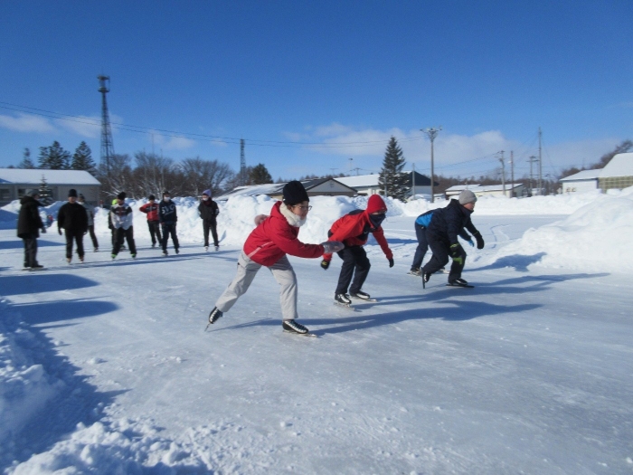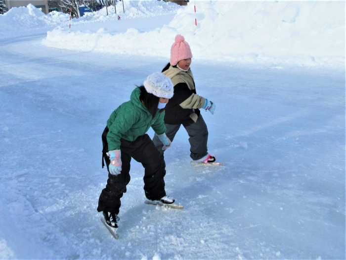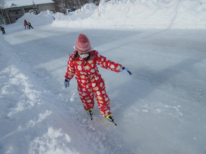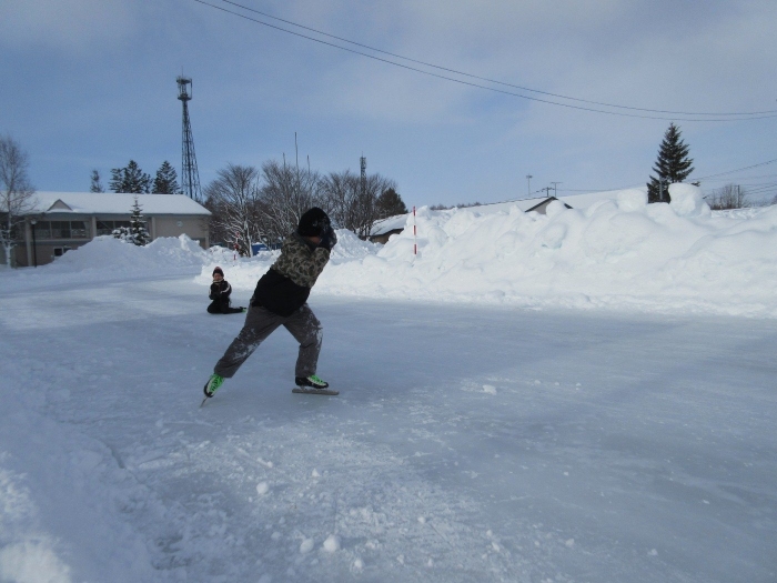 今年のリンクは昨年の暮れからオープンできたので、冬休み中スケート練習に励んだ子どもがたくさんいました。子ども達は、初日とは思えないほど自信をもって、どんどん滑ってぐんぐん上達し、放課後も下校バス迄何週も滑って帰りました。