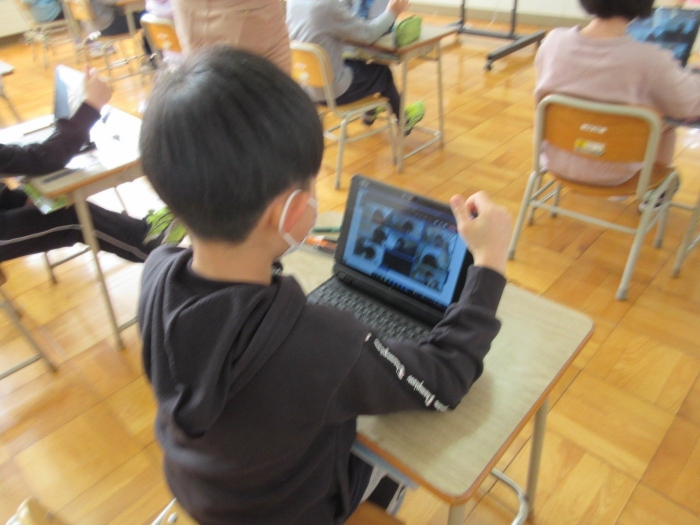 今日は、リモートで顔を合わせて言葉を交わしたり、担任の先生から配信された課題で学習を進めたりする技能を進化させました。キーワードは「つながる」です。先生と子どもが、子どもと子どもが、学校と家庭がつながるツールとして、場面に合わせて活用していきます。今は新型コロナ感染症急拡大で心配な状況ですが、ICTは、非常事態においても、学びを止めず、孤立を生み出さない、つながるツールになってくれそうです。