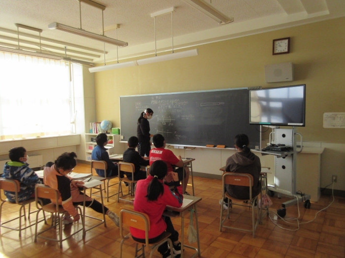 複式学級を強みに、5・6年生で学年枠を無くした算数「割合」の授業をしました!5年生で学習する「割合」は、小学校時代の算数の中でも、習得に苦労をする内容のひとつです。中学校進学前の6年生も、ちょっと振り返って学習内容の定着にトライしました!
