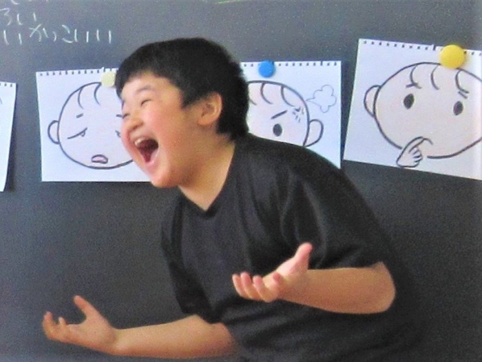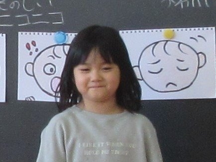 「宿題をやっていなかったけど、まあいいや・・ていう顔!」・・実生活が垣間見える子どものマニアックな答えっぷりに、大人の方が思わず吹き出してしまいました。授業の最後の振り返りには、「人のきもちがかおだけでわかるなんてすごいと思った。」「ともだちのいいところときもちがわかった。」など、うれしい発見が書かれていました。