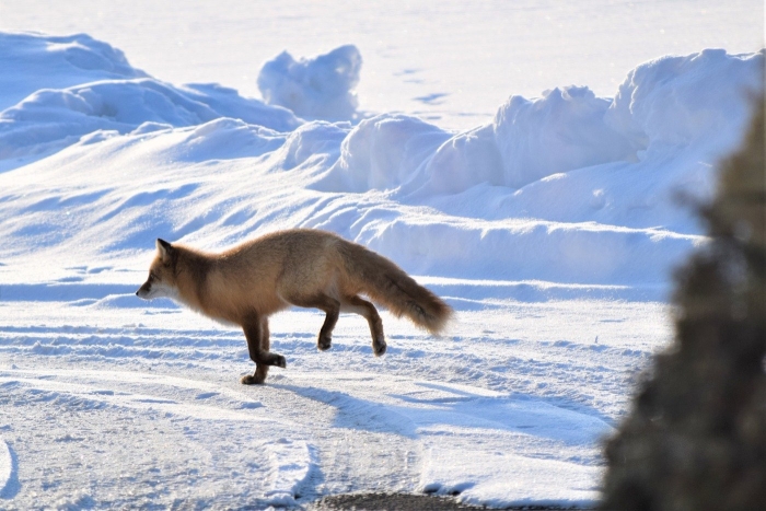 中西小を守っているカラスが、キツネを追い払ってくれました。
