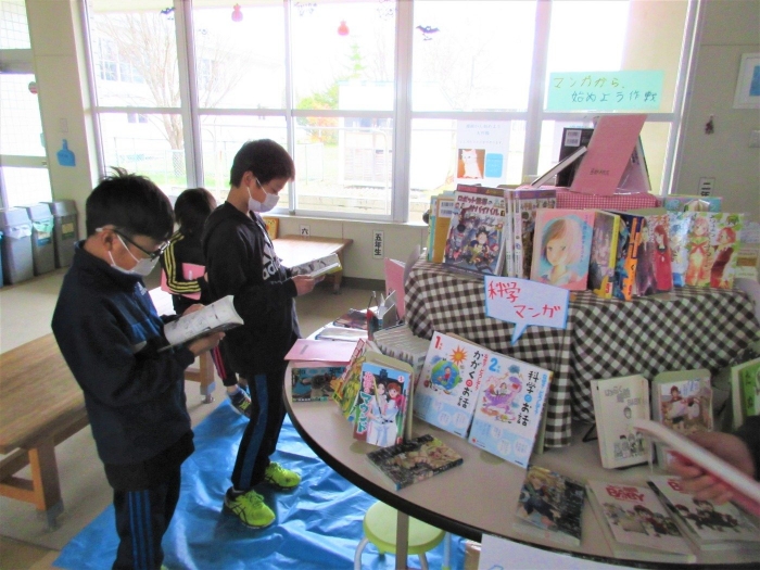 中西っ子の2学期の目標は「本をたくさん読もう」です。5年生と6年生が1階ホールに漫画タワーを作ってくれました。「漫画からはじめよう!」作戦です。登校してすぐに読んだり、バス待ちの時間に読んだり、読書に親しむ中西っ子が急増です。