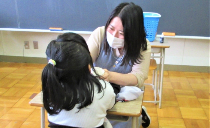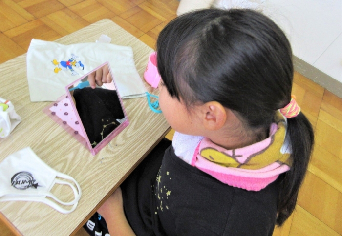 本校では、11月を「はピッカピカ月間」に位置付けて、いつもより意識高めに歯磨きに取り組みます。今週~来週は、養護教諭の先生が各教室を回ってあか染め液を使って磨きの残しをチェックしながら、歯磨きのスキルアップに取り組みます。トップバッターは2年生です。赤く残るところは歯のつけねや、裏側のようです。
