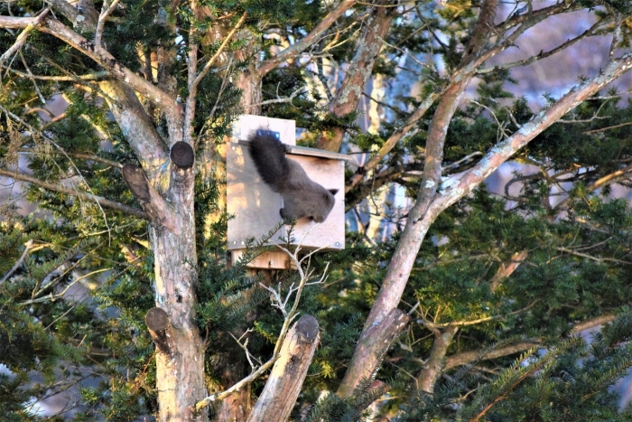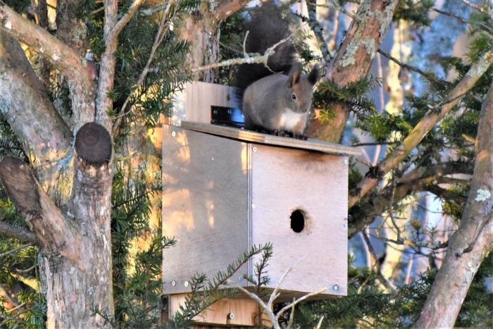 今日もお気に入りの巣箱の上へ