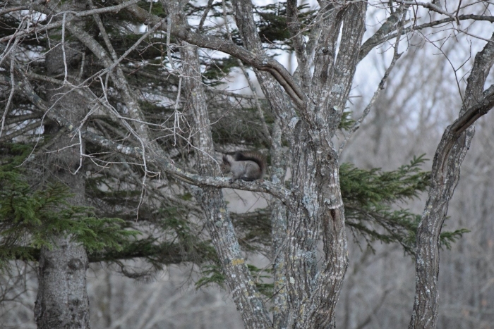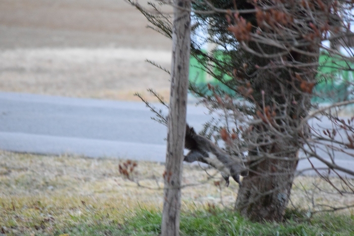 ここからは、朝、中西別小学校の窓からの風景を見ている気分で、エゾリスを探してみてください。